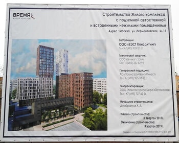 Запрет на привлечение денег дольщиков на строительство ЖК «Время» было оглашено Арбитражным судом Москвы в отношении ООО «Бэст Консалтинг», которое является застройщиком данного проекта.